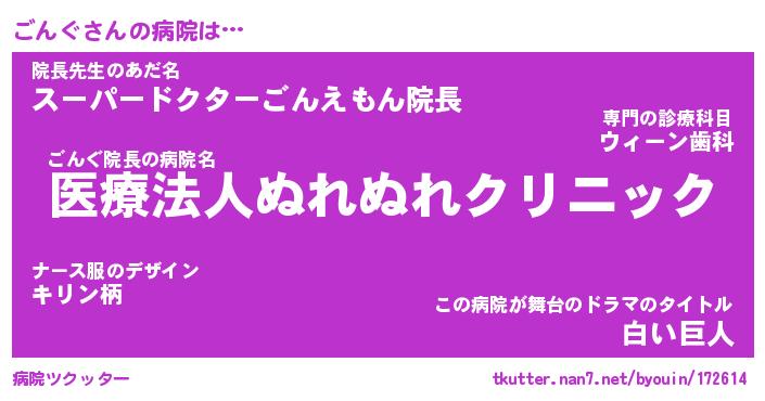| 2回繰り返すあだ名 | 『ごんごん』『ごごんん』『いらいら』 |