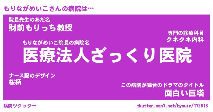| 胡散臭い通販商品みたいなあだ名 | 『億万長者になれる霊験あらたかなお札…その名も「もりながめいこ」』 |