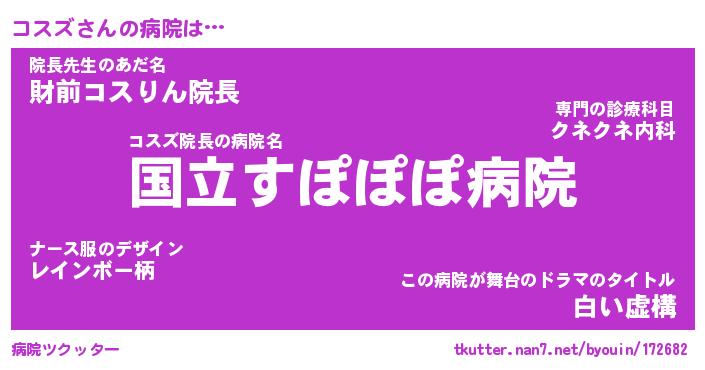 | ヒーロー風カッコイイあだ名 | 『スーパーコスズ』『ウルトラコスズマン』 |