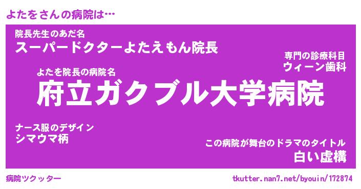 | ヘコむあだ名 | 『よたにゅー』『つくし』『よた太郎』 |