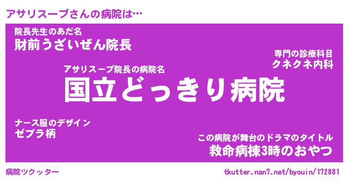 | ヒーロー風カッコイイあだ名 | 『スーパーアサリスープ』『銀牙騎士アサ』 |