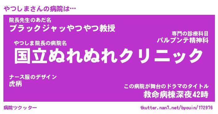 | ファンタジー風あだ名 | 『ヤツフェル』『エターナルヤツシマー』 |