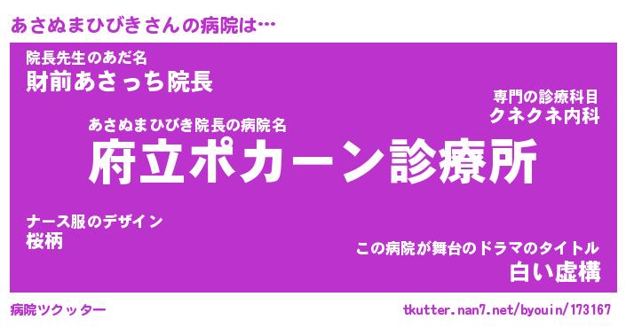 | ポケモン風あだ名 | 『アサチュウ』『アサヌダネ』 |