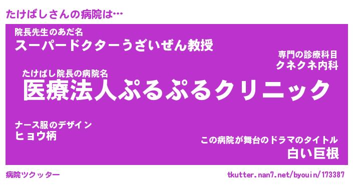 | ヘコむあだ名 | 『たけにゅー』『牛乳』『たけ太郎』 |