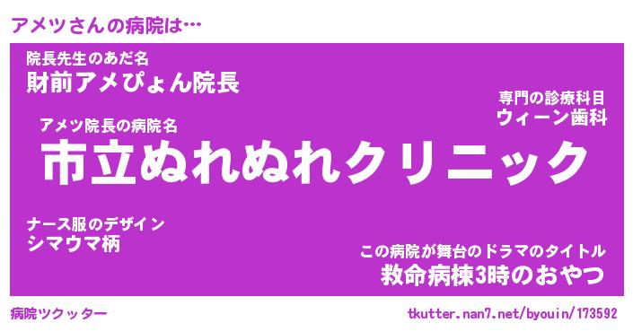 | 2回繰り返すあだ名 | 『アメアメ』『アアメメ』『ぬるぬる』 |