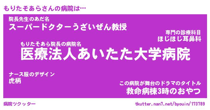 | 肩書あだ名 | 『もりたそあら御曹司』 |