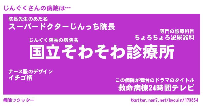 | 意味不明あだ名 | 『ペロリンじんぐく』『永久保存じんぐく』 |
