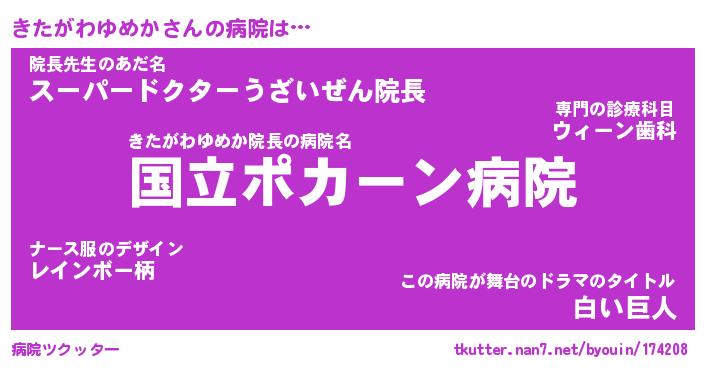 | 恥ずかしいあだ名 | 『プリティーきたがわゆめか』『きたちん』 |