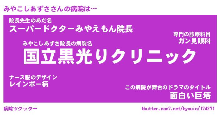 | ヘコむあだ名 | 『みやにー』『つくし』『みや太郎』 |