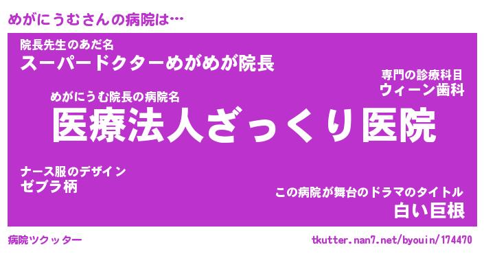 | 2回繰り返すあだ名 | 『めがめが』『めめがが』 |