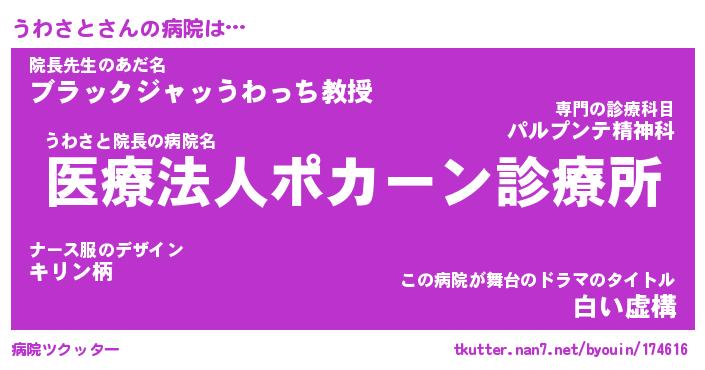| ポケモン風あだ名 | 『ウワチュウ』『ウワサダネ』 |