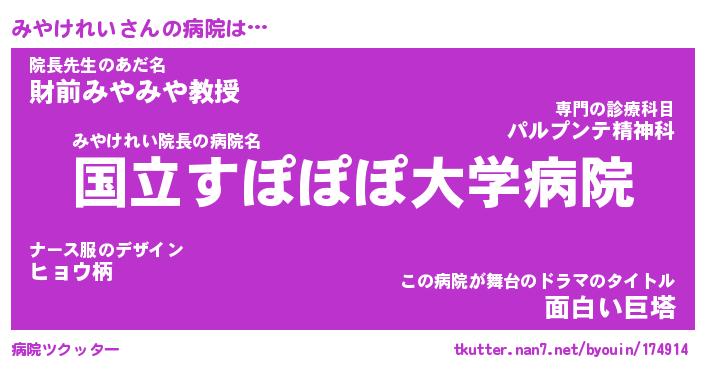 | ファンタジー風あだ名 | 『ミヤフェル』『エターナルミヤケレイー』 |