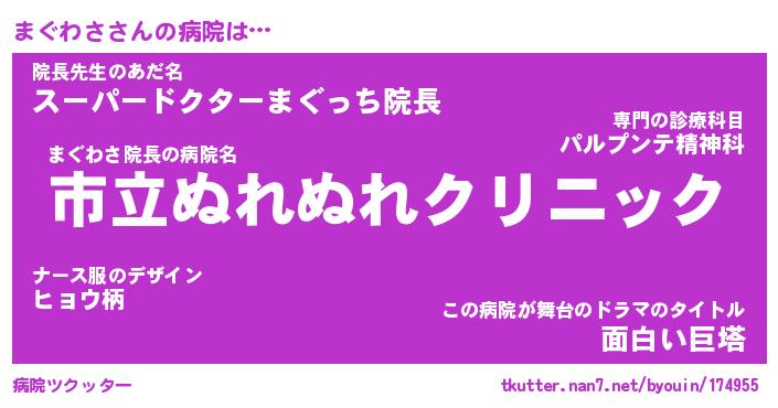 | 意味不明あだ名 | 『ペロリンまぐわさ』『永久保存まぐわさ』 |