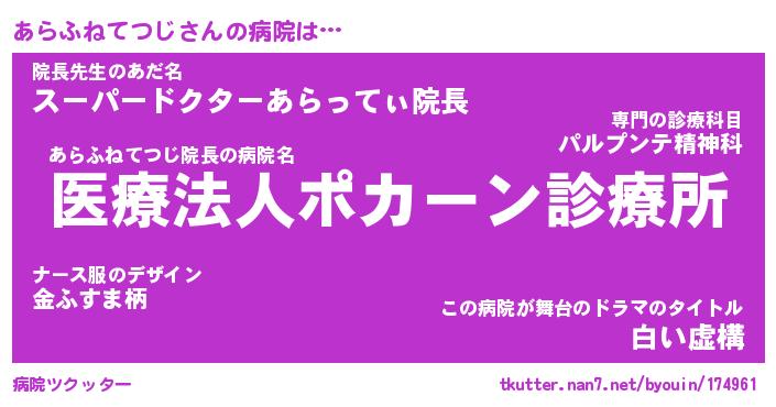| ツイッター | あらふねてつじさんのツイッターID『fukuyoka_kun』 |