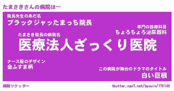 | 男性向けラノベタイトル風あだ名 | 『タマサキアートオンライン』 |