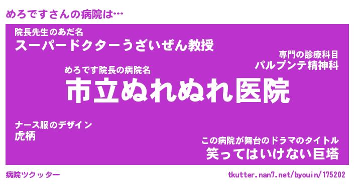 | 男性向けラノベタイトル風あだ名 | 『めろですの憂鬱』 |