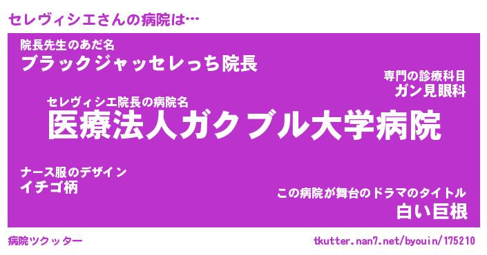 | ツイッター | セレヴィシエさんのツイッターID『dendenmushi_idle』 |