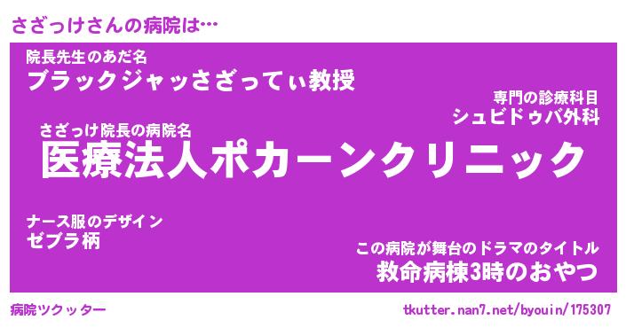 | ヘコむあだ名 | 『さざにゅー』『なまこ酢』『さざを』 |