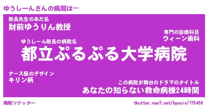 | ポケモン風あだ名 | 『ユウチュウ』『ユウシダネ』 |
