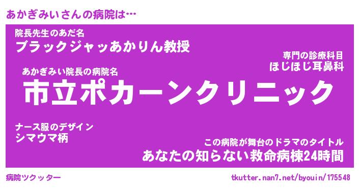 | 欧米人風あだ名 | 『マイケルあかぎみい』 |