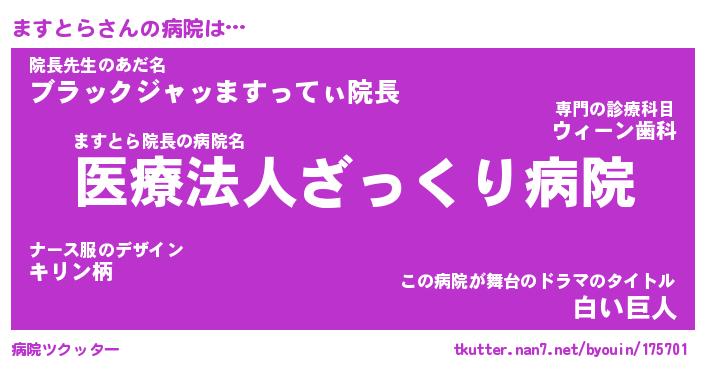 | 意味不明あだ名 | 『ペロリンますとら』『永久保存ますとら』 |