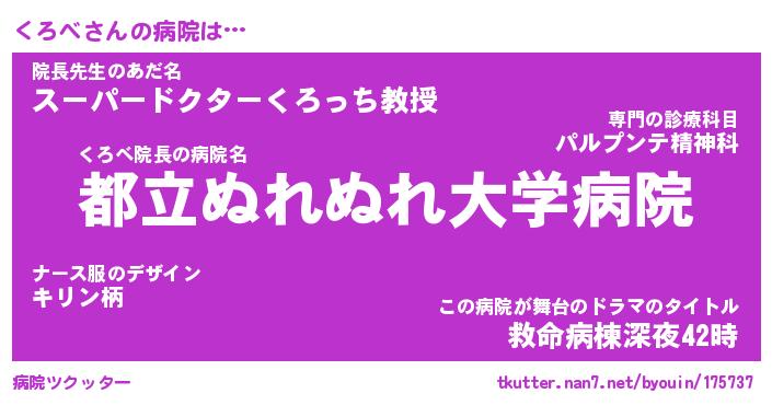 | 2回繰り返すあだ名 | 『くろくろ』『くくろろ』『ぬるぬる』 |