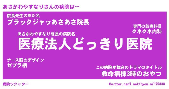 | 肩書あだ名 | 『あさかわやすなり御曹司』 |