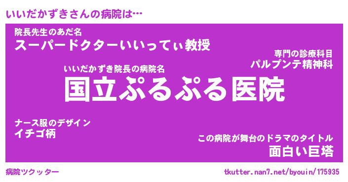 | 女子向けラノベタイトル風あだ名 | 『(仮)いいだかずきのやんごとなき事情』 |