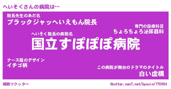 | 伝説のあだ名 | 『伝説のスナイパーへいそく』 |