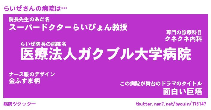 | 意味不明あだ名 | 『ペロリンらいぜ』『らいぜフォーエバー』 |