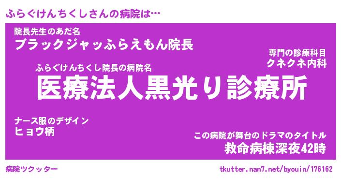 | 胡散臭い通販商品みたいなあだ名 | 『億万長者になれるブレスレット…その名も「ふらぐけんちくし」』 |