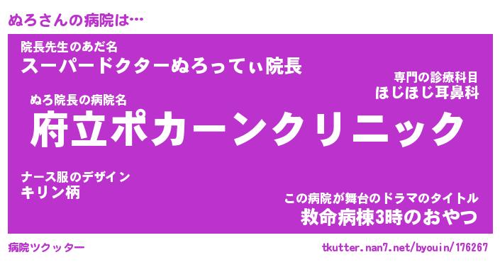 | ヘコむあだ名 | 『ぬろにゅー』『つくし』『ぬろ太郎』 |