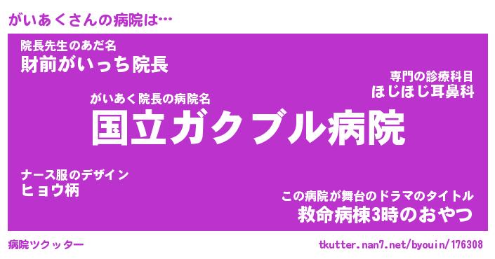 | 男性向けラノベタイトル風あだ名 | 『がいあくの憂鬱』 |