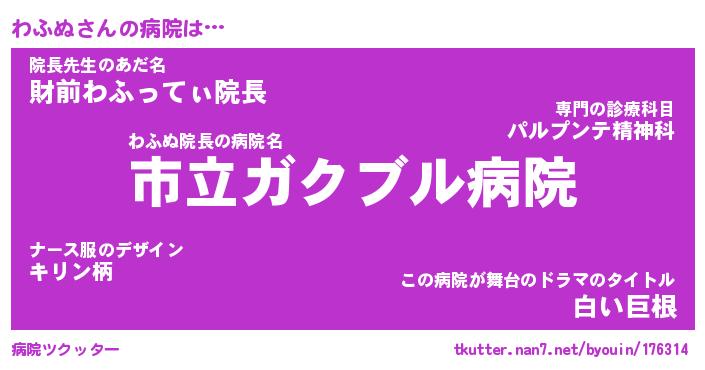 | 男性向けラノベタイトル風あだ名 | 『わふぬの憂鬱』 |