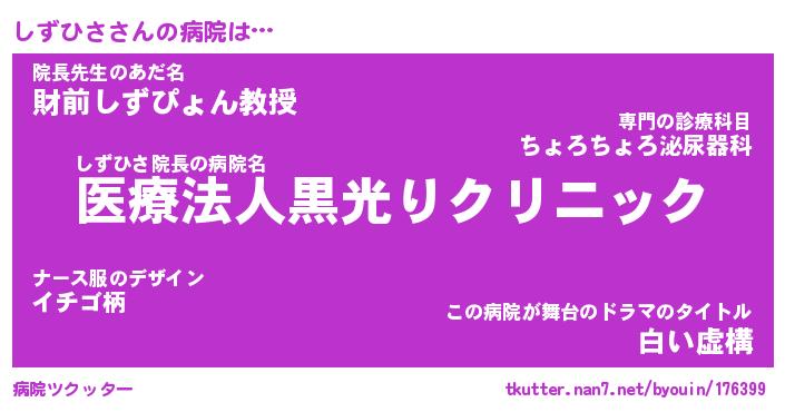 | 胡散臭い通販商品みたいなあだ名 | 『億万長者になれるブレスレット…その名も「しずひさ」』 |
