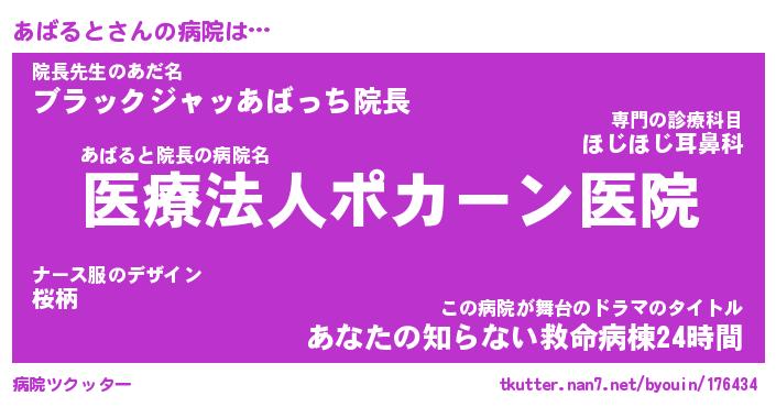 | 意味不明あだ名 | 『ペロリンあばると』『永久保存あばると』 |