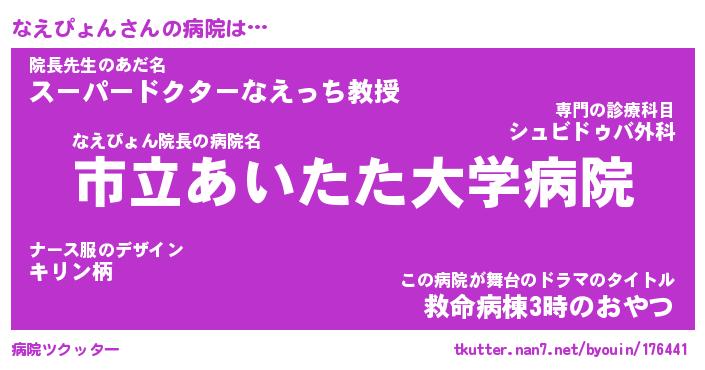 | 男性向けラノベタイトル風あだ名 | 『なえぴょんの憂鬱』 |