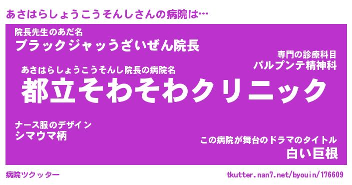 呪いの病院の様だw …「あさぎ」 | 3月30日 10:32 |