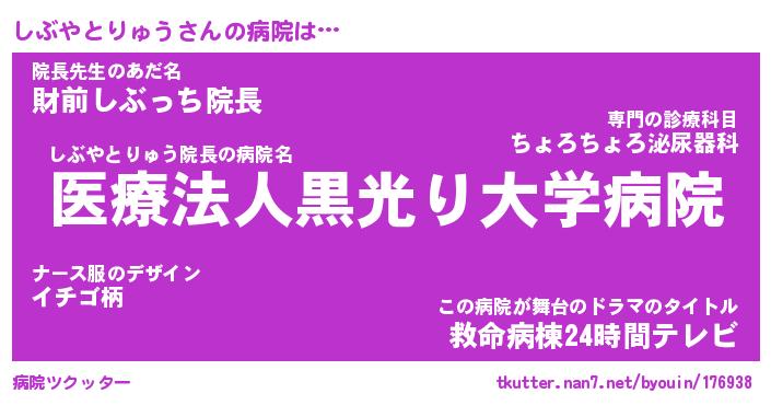 | 男性向けラノベタイトル風あだ名 | 『シブヤトリュウアートオンライン』 |
