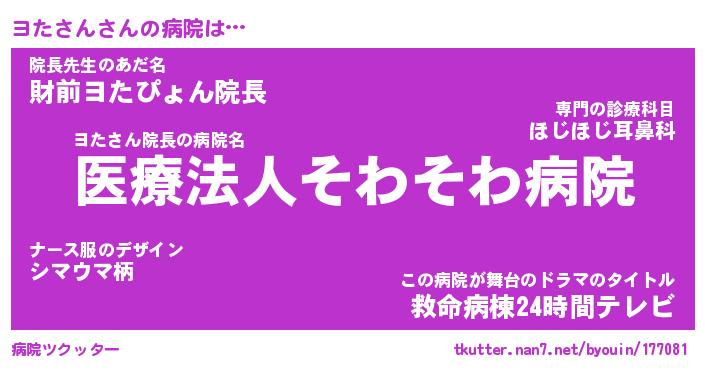 | ピコ太郎風あだ名 | 『ヨコ一郎』『ピヨ八郎』『ヨタ八郎』 |