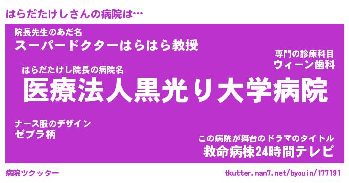 | ツイッター | はらだたけしさんのツイッターID『dendenmushi_star』 |