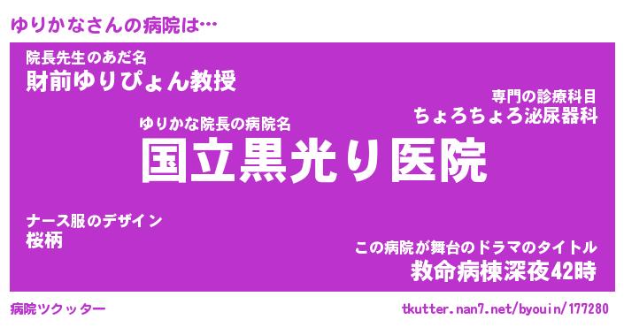 | 胡散臭い通販商品みたいなあだ名 | 『必ず成功するブレスレット…その名も「ゆりかな」』 |