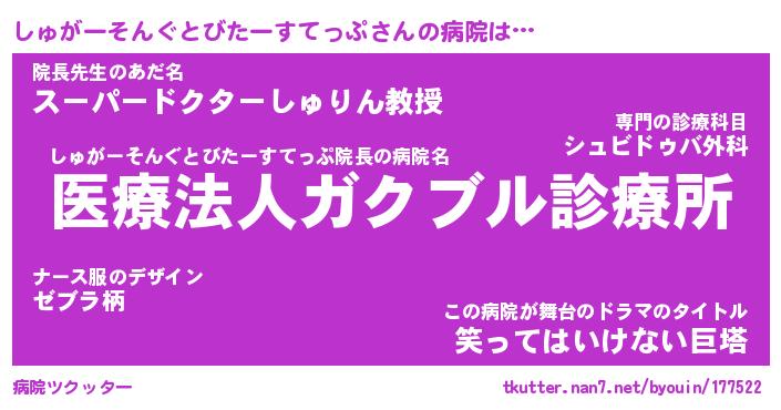 | 2回繰り返すあだ名 | 『しゅしゅ』『ししゅゅ』『がくがく』 |