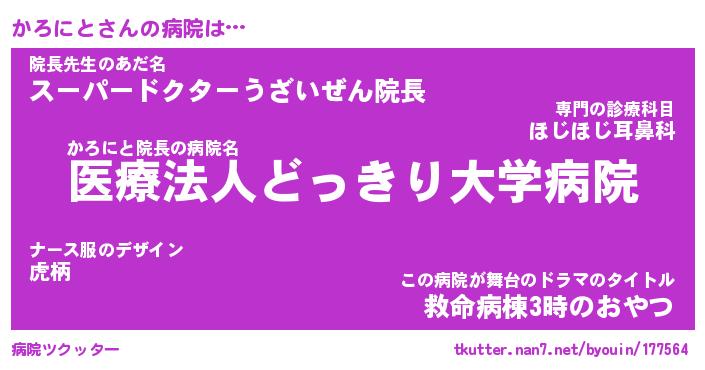| 意味不明あだ名 | 『ペロリンかろにと』『永久保存かろにと』 |