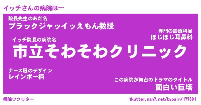 | 男性向けラノベタイトル風あだ名 | 『イッチの憂鬱』 |