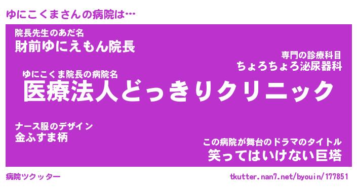 | ピコ太郎風あだ名 | 『ユコ十郎』『ピユ二郎』『ユニ四郎』 |
