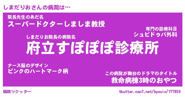 | 2回繰り返すあだ名 | 『しましま』『ししまま』『うねうね』 |