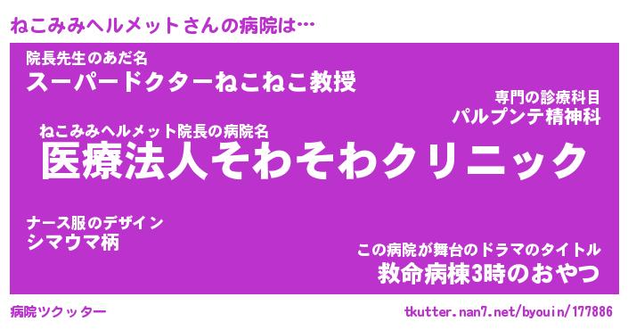 | 欧米人風あだ名 | 『マイケルねこみみヘルメット』 |