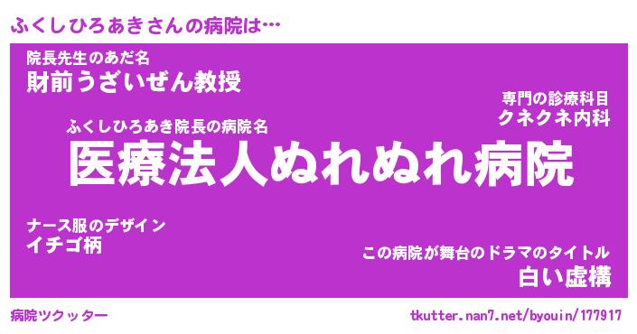 | 胡散臭い通販商品みたいなあだ名 | 『億万長者になれる霊験あらたかなお札…その名も「ふくしひろあき」』 |