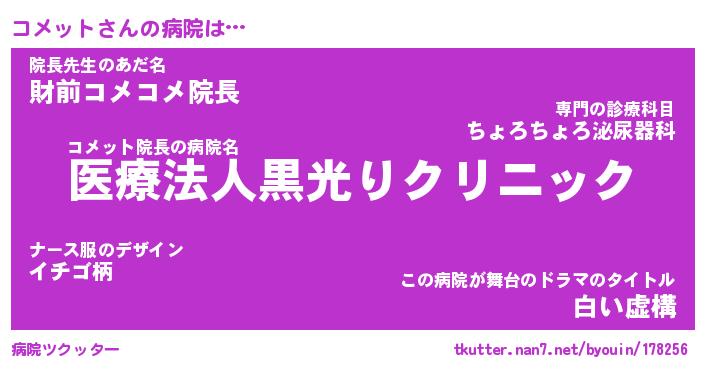 | 自動車の名前っぽいあだ名 | 『コメティマ』『コスラー』『コント』 |